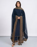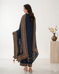 Embrace the elegance of black with our timeless creation — Navy Attire. A stunning 3-piece lawn suit that blends classic charm with contemporary finesse.
